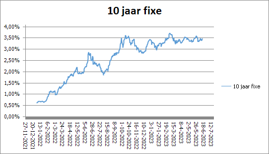 Renteverloop 10 jaar fixe van de BNG van 1 januari 2022 tot 15 juni 2023.