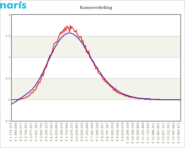 Op basis van de ingevoerde risico's is een risicosimulatie uitgevoerd. De risicosimulatie wordt toegepast omdat het reserveren van het maximale bedrag ongewenst is. De risico's zullen immers niet allemaal tegelijk en in hun maximale omvang optreden. Onderstaande figuur en de bijhorende tabel tonen de resultaten van de risicosimulatie.